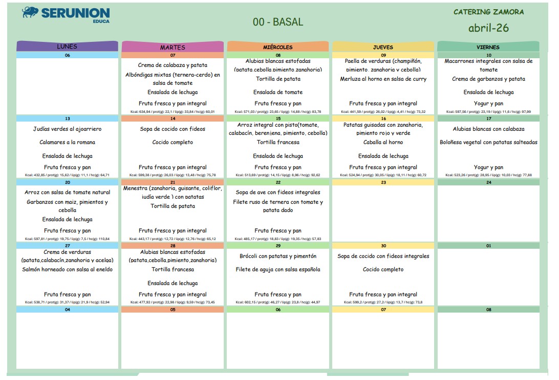MENÚ COMEDOR ABRIL